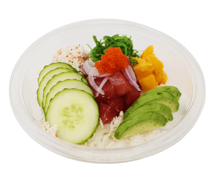 Bluefin tuna, poke sauce, fresh mango, crab mix, avocado, seaweed salad, cucumber, onion, fish egg